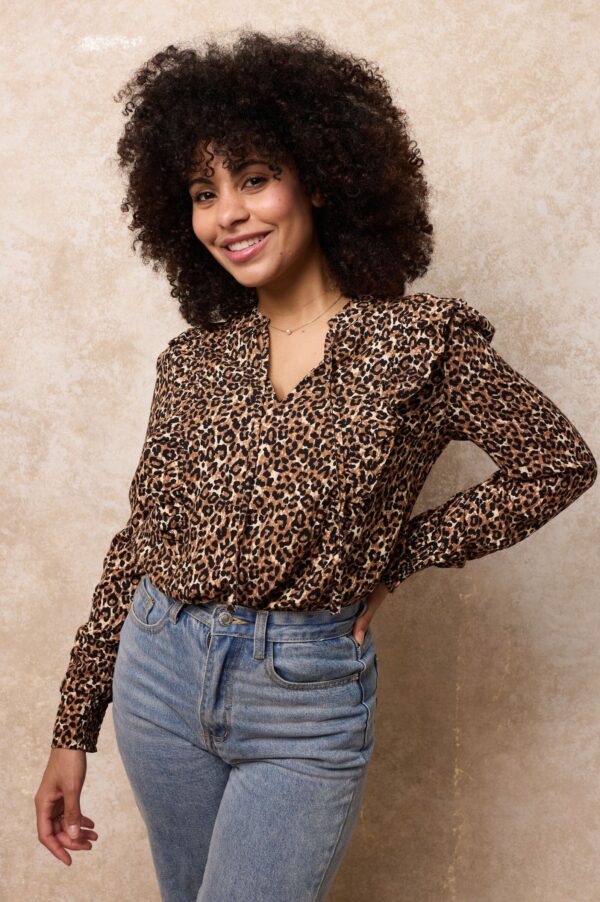 Meet Amba your new wardrobe staple. This gorgeous, leopard print, frill nursing blouse pairs beautifully with your favourite jean or pleather legging, but also looks great with a pencil skirt for work too.